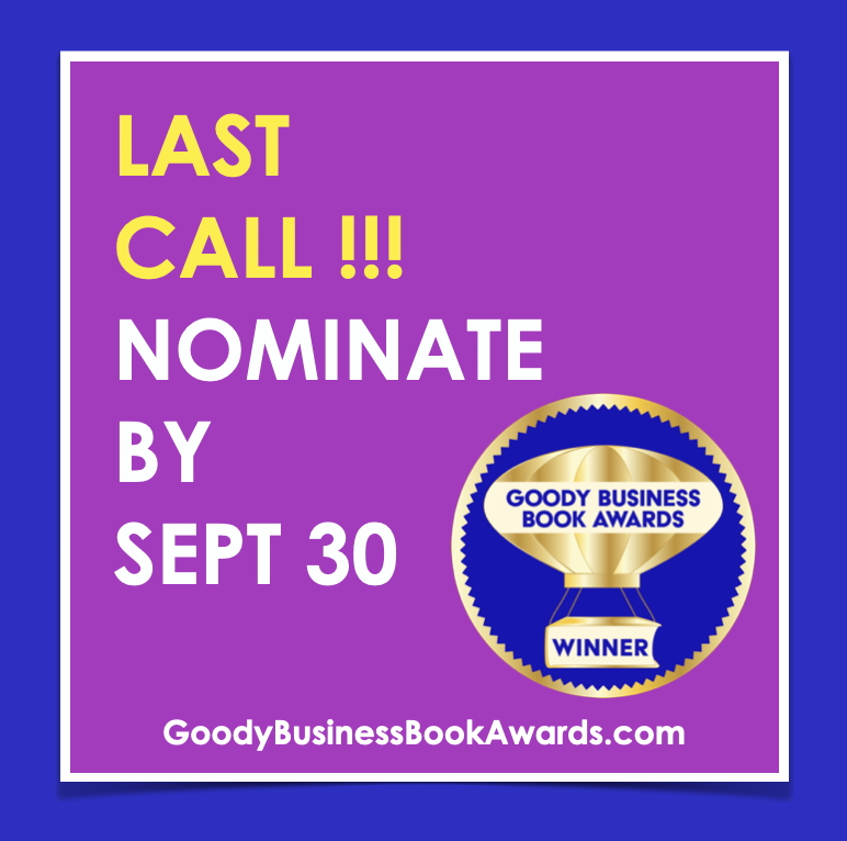 WHERE TO NOMINATE BOOKS BY SEPT 30 FINAL DEADLINE: https://goodybusinessbookawards.com/nominate-book/